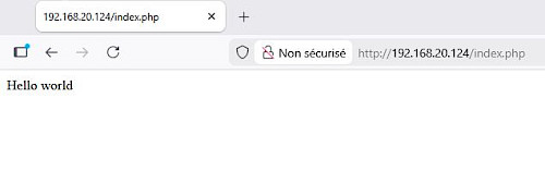 Écrivez juste Hello World sur cette page, sauvez la et retournez sur le navigateur http://raspberry_IP/index.php