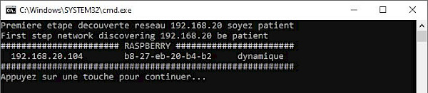 Pour le trouver, utilisez le petit programme que j'ai préparé pour vous : Findpi Ce programme repère votre adresse IP, effectue une analyse complète du réseau, puis recherche l'adresse du Raspberry Pi.