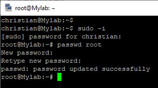 Le nom d'utilisateur se transforme en root et comme nous allons toujours travailler en root, nous allons donner un password a cet utilisateur