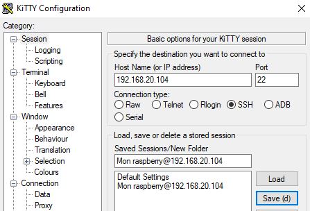 service ssh restartFermez Kitty et contrôlez que vous pouvez vous connecter avec root/mot_de_passe_root directement si c'est ok, fermez/re-ouvrez kitty et enregistrez la session.