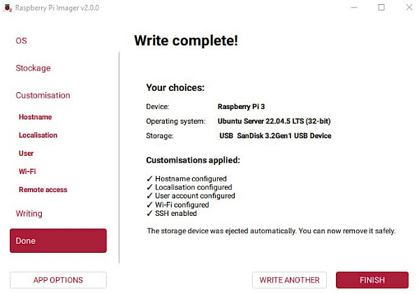 C'est le moment "d'éjecter le média" retirez la clef et insérez la dans votre Raspberry, démarrez le et patientez quelques minutes.